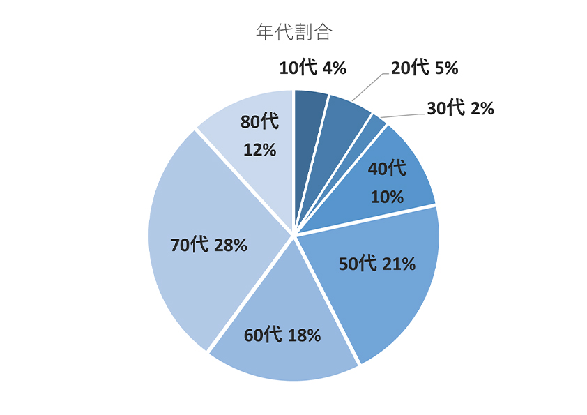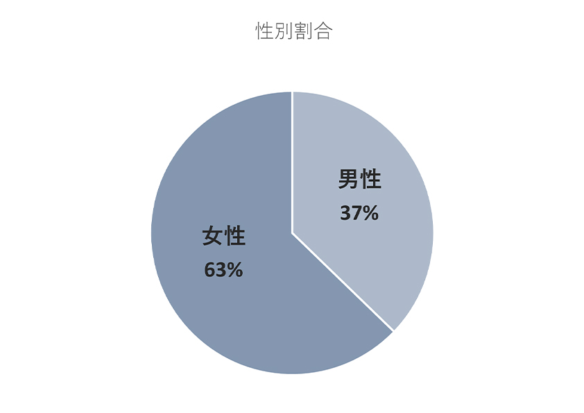 女性の割合が少し高いですが、性別を問わず、幅広い方に選ばれています。また、ライフスタイルに応じた、一人ひとりに合わせたリハビリテーションをご提供します。