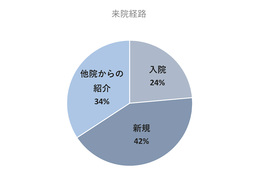 新規の方の割合が高く、初めてもスムーズに受診できます。また、地域の医療機関との連携や、退院後の外来リハビリテーションへの切れ目ないサポートにも力を入れています。